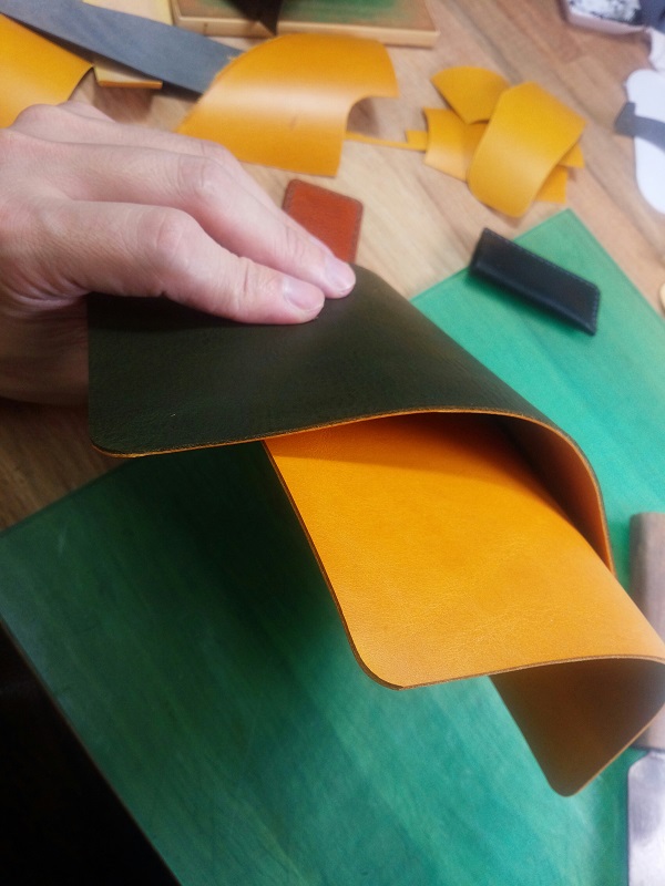 SMALL GOODS お久しぶりの小物制作 新しい道具がかなり使い勝手よろし! 道具のあまりこだわりないジンガロさんですが いい道具は仕上がりとスピードが段違い! 道具ばっかりこだわって 肝心の作るモノがしょぼくならないように気を付けます。 革漉き機も久々の稼働 刃を研ぎ直したんですが こんな動きだったか?!くらいの違和感・・・ 壊れなきゃいいけど・・・頼むでぇ 『モスグリーン×イエロー』のオーダー 自分では絶対組み合わせない配色 完成が楽しみであります。